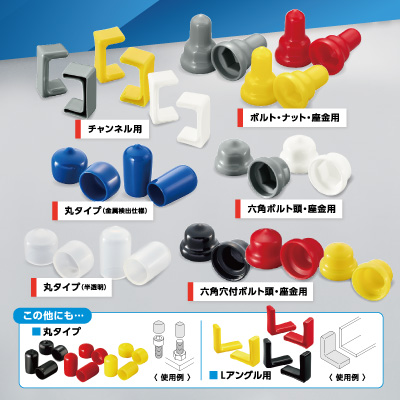 ケガ防止の安全対策に! 製品のキズ防止、異物侵入対策に! ◆チャンネル用 ◆丸タイプ(金属検出仕様)(半透明) ◆ボルト・ナット・座金用 ◆六角ボルト頭・座金用 ◆六角穴付ボルト頭・座金用