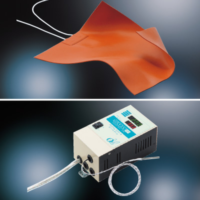 【ストレッチヒーター】 あらゆる曲面に密着します! ●通常のラバーヒーターに比べ被加熱物への密着性が大幅UP。 ●ニクロム線を使用していない為、発熱線の折れがありません。 【デジサーモ OT-9 プロ】 加熱昇温のペースを管理! ステップコントロールが可能! ヒーターの加温時間と温度を最大64段階のプログラムで管理することが可能です。 被加熱物の特性に合わせ、設定温度を変化させながら制御できます。