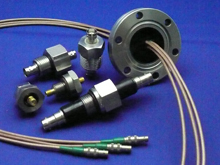 高強度、低アウトガスのエポキシでモールドされた、ハーメチックフィードスルーです。半導体、X線、電力、スペースシュミレーション、その他真空関連、圧力容器関連の分野で使用されています。