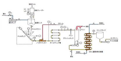 一定濃度に溶解したPVA水溶液を短時間に連続して生産することができます。 |