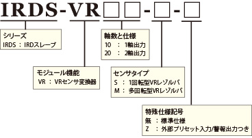 S:1回転型(シングルターン)VRレゾルバ M:多回転型(マルチターン)VRレゾルバ |
