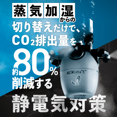 静電気対策 ■現場を濡らさない最適湿度で静電気対策 ■Co2削減量のシミュレーションをご提案 ■省エネで稼働、ランニングコストを削減