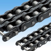 | 内、外プレート各々に黒染め処理を施すことにより、多少の耐食性を持たせるとともに高級感のある仕上がりとなっています。RSローラチェーンと互換性を持たせるために、内プレートの板厚を1サイズ大きくし、引張強さ、最大許容張力をRSローラチェーンと同等としております。そのため、RSローラチェーンよりもピン長さが長くなっておりますので、お取替の際は、装置との干渉についてご確認ください。 |