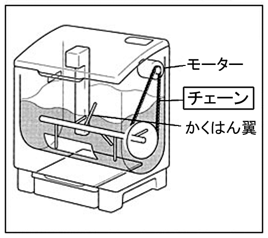 問題点 一般家庭向け機器は、メンテナンスフリーが原則。期待寿命も当然機器本体と同一の寿命が期待される。ベルトでは強度・スペースが問題。 ▼ ラムダチェーン採用後 検討結果ほぼ目標寿命をクリアーし、装置の信頼性とイメージアップに貢献。給油装置も検討していたが不要になりコストダウンにも貢献。 |