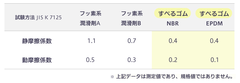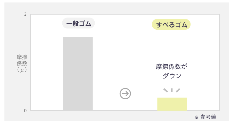 すべるゴムは、一般ゴムと比較すると摩擦係数が低い → 滑りやすい |