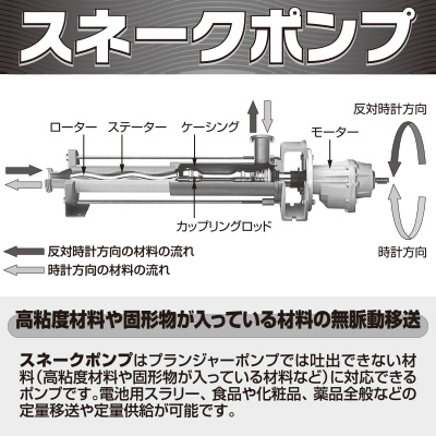 高粘度・固形物定量移送供給ポンプ スネークポンプ