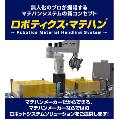 コンベヤ搬送・垂直搬送機搬送・フォークリフト搬送→工程間搬送集約 解決!