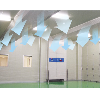 天井にダクトを設置しクリーンな空気を均一に送風 ■温度 ■湿度 ■気流 ■清浄度